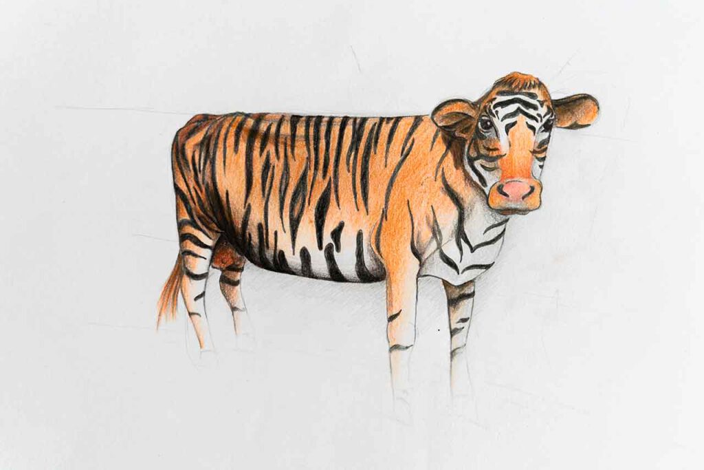 Tiere in neuem Felldesign. Bleistift und Buntstifte wurden hierfür verwendet.